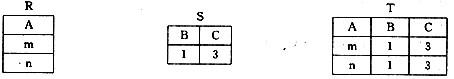 设有如下三个关系表下列操作中正确的是A)T=R ∩ S B)T=R ∪ S C)T=R × S D)T=R/S