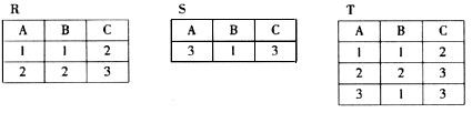 设有如下三个关系表下列操作中正确的是A)T=R ∩ S B)T=R ∪ S C)T=R × S D)T=R/S