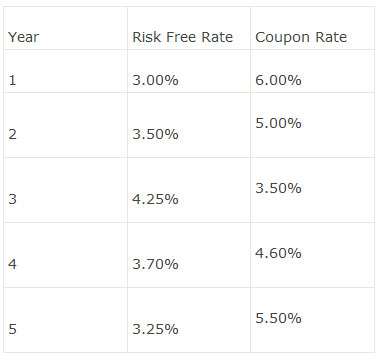 The table below provides a history of a fixed income security’s coupon rate and the ri