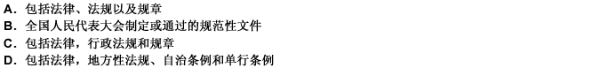 、《行政诉讼法》规定“法律规定由行政机关最终裁决的具体行政行为”中的法律指的是下列哪个选项所包含的规