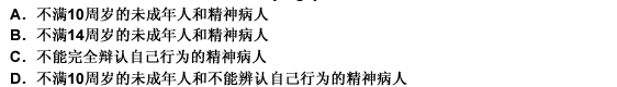 无民事行为能力人是指 年龄在()以下的人A.10周岁B.12周岁C.16周岁D.18周岁