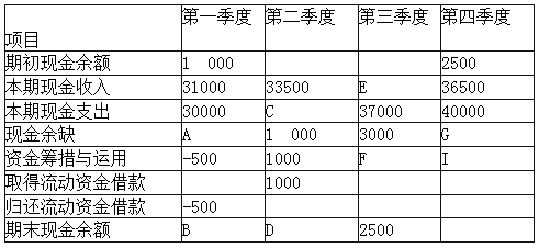 某企业2017年现金预算(简表)如下表所示。假定企业发生现金余缺均由归还或取得流动资金借款解决,且流动资金借款利息可以忽略不计。除表中所列项目外,企业没有有价证券,也没有发生其他现金收支业务。预计2017年末流动负债为4000万元,需要保证的年末现金占流动负债的比率为50%。要求:根据所列资料,计算填列表中用字母表示的项目(单位:万元)。