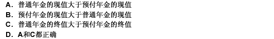 以下关于年金的说法正确的是()。A.普通年金的现值大于预付年金的现值B.预付年金的现值大于普通年金