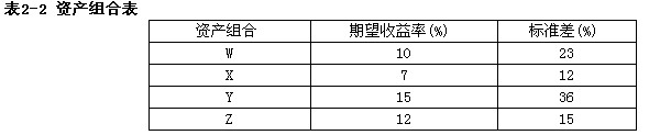按照马柯维茨的描述,表2-2中的资产组合中不会落在有效边界上的是()。
