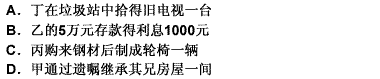 下列哪一选项属于所有权的继受取得?( )A.丁在垃圾站中拾得旧电视一台B.乙的5万元存款得利息1