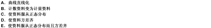 变量变换的目的是A、使方差齐B、使资料正态化C、使曲线直线化D、使资料满足方差分析和t检验的需要E、