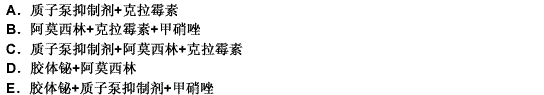 如患者幽门螺杆菌阳性应采用哪种治疗A.质子泵抑制剂+克拉霉素B.阿莫西林+克拉霉素+甲硝唑C.质子