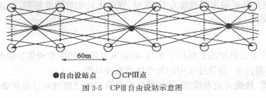 高速铁路CPⅢ控制网是通过全站仪自由设站后方交会的方式进行测量。例如,××客运专线,其CPⅢ控制网测量方式如图3-5所示。