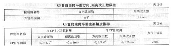 根据《高速铁路工程测量规范》(TB10601-2009)要求CPⅢ平面网自由网平差后方向和距离改正数应满足表3-5要求。CPⅢ平面网约束平差后应满足表3-6要求。