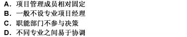 项目组织模式的特点中 项目负责人实际扮演的角色是项目经理的是( )组织结构。 A.职能式 B.弱矩