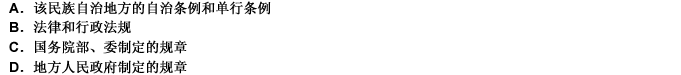 民族自治地方的人民法院审理行政案件的依据不包括()。 A.行政法规 B.地方性法规 C.规章 D.