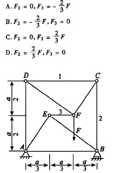 平面桁架的支座和载荷如图所示。ABC为等边三角形 E F为两腰中点 又AD=DB 则杆 CD的内力FCD为( )。