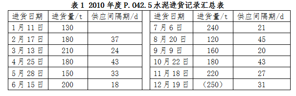 【背景资料】某企业2010年度P.0 42.5水泥的实际进货记录如表1所示。由于施工项目任务量大 2011年度