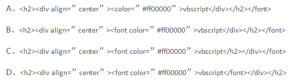 若要以标题2号字、居中、红色显示”hello”,以下用法中,正确的是()