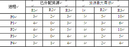 ● 假设具有5个进程的集合P={P0 P1 P2 P3 P4} 假设在某时刻状态如下 系统中当前三类资源A B C的剩