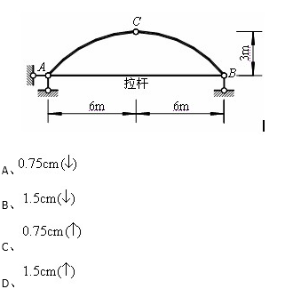 题157图所示拱中拉杆AB比原设计长度短了1.5cm,由此引起C点的竖向位移为()。