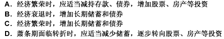 下列有关投资的说法中 错误的是( )。A.经济繁荣时 应适当减持存款 债券 增加股票 房产等投资B