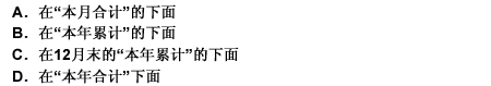 下列需要划双红线的是( )。A.在“本月合计”的下面B.在“本年累计”的下面C.在12