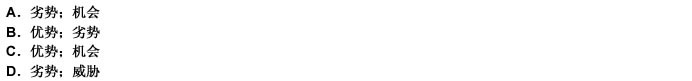 SWOT分析方法中 “S”和“W”分别代表( )A.劣势;机会B.优势;劣势C.优势;机会D.劣势;威胁