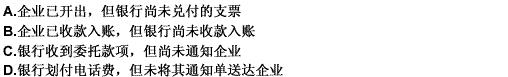 下列账款中属于未达账项的有( )A 企业已开出 但银行尚未兑付的支票B 企业已收款入账 但银行尚