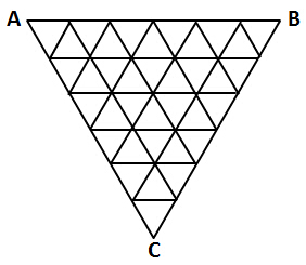 如图 某三角形展览馆由36个小三角形展室组成 每两个相邻展室(指有公共边的小三角形)都有门相通