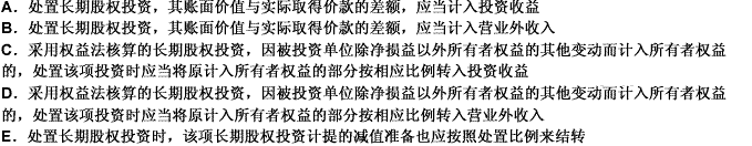 企业处置长期股权投资时 正确的处理方法有( )。A. 处置长期股权投资 其账面价值与实际取得价款的