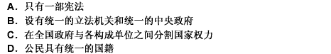 国家结构形式可以分为单一制和复合制两大类,下列不是单一制国家特点的是().A.只有一部宪法B.设有
