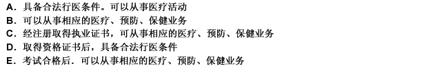 依法取得执业医师或执业助理医师资格的医生A、具备合法行医条件,可以从事医疗活动B、可以从事相应