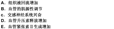 急性失血时 最先出现的代偿反应是A.皮肤血管收缩 B.交感神经系统兴奋C血管紧张素Ⅱ增多 D.心率