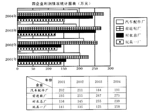 在2001~2004年间,企业利润呈减幅状态的厂次共多少?()