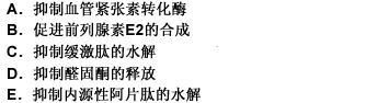 158.卡托普利的主要降压机制是A.抑制血管紧张素转化酶B.促进前列腺素E2的合成C.抑制缓激肽的
