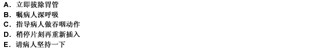 插胃管时 病人出现呛咳 发绀时 护士应( )A 嘱病人深呼吸B 立即拔出胃管重插C 嘱病人作吞咽动作