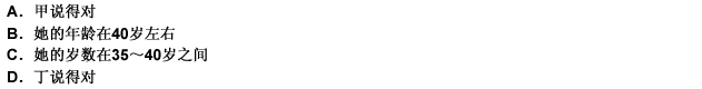 四个人在议论一位作家的年龄。甲说:“她不会超过35岁。”乙说:“她不超过40岁。”丙说:“她的岁数在50