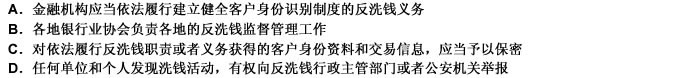 下列关于反洗钱的叙述正确的是( )。 A.金融机构应当依法履行建立健全客户身份识别制度的反洗钱义务