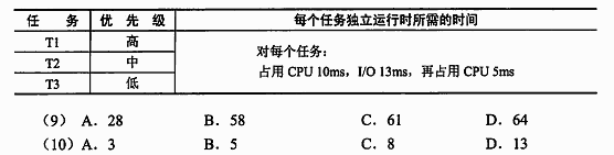 在一个单CPU的计算机系统中 采用按优先级抢占的进程调度方案 且所有任务可以并行使用I/O设备。现