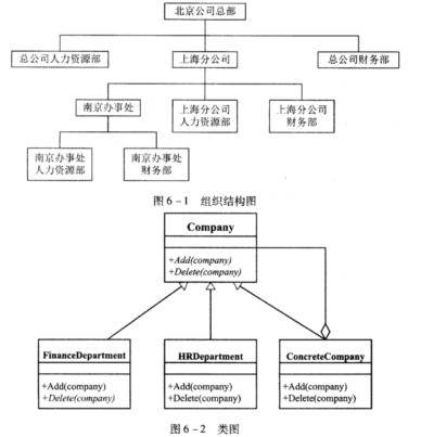 某公司的组织结构图如图6-1所示,现采用组合(Composition)设计模式来设计,得到如图6-2所示的类图。