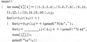 有以下程序: 若要按以下形式输出数组右上半三角: 则在程序下划线处应填人的语句是( )。 A.i-