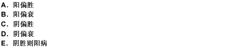 导致实热证的阴阳失调是A、阳偏衰B、阳亢盛C、阴偏盛D、阴偏衰E、阴胜则阳病