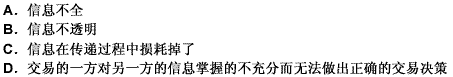 信息不对称的含义是指()。A.信息不完全B.信息不透明C.信息失真D.交易的一方对交易的另一方的信