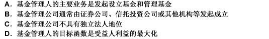 对基金管理人的概念认识错误的是()。 A.基金管理人的目标函数是受益人利益的最大化,