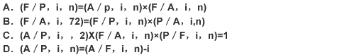 在资金时间价值计算时 i和n给定 下列等式中正确的有( )。A. (F/A i n) = [