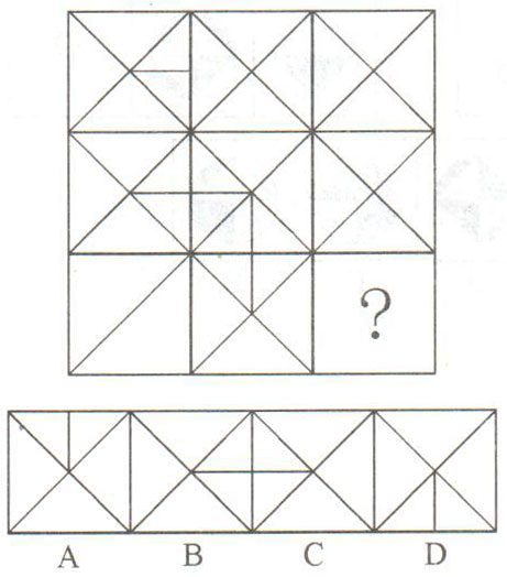 从所给的四个选项中,选择最合适的一个填入问号处,使整个大图形呈现一定的规律性。