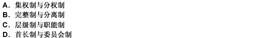 依据同一层次上的各个行政组织所受上级指挥和控制的异同来划分,行政组织可分为 ______。A.集权制