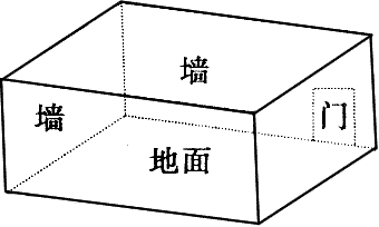 一间长方体仓库长8m,宽6m,高4m。仓库装有一扇门,门宽2m,高2m。(如下图)