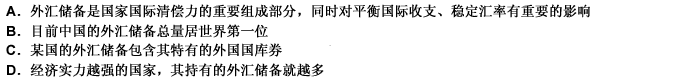 下列关于外汇储备的说法不正确是()。 A.外汇储备是国家国际清偿力的重要组成部分,同时对平衡国