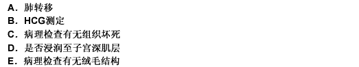 7.关于侵蚀性葡萄胎与绒毛膜癌的鉴别 正确的是A.尿中hCG高者为绒毛膜癌B.有肺转移者为绒毛膜癌