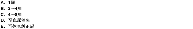闭合性肾损伤必须绝对卧床休息A 到休克纠正后B 到血尿转清后C 腰部肿块不再增大D 1周E 2 ~