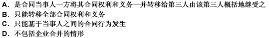 关于合同权利义务概括转让的说法中 不正确的是( )。A.合同权利义务概括转让 是指合同当事人一方