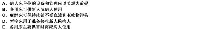 以下关于各种铺床法的说明正确的是A.备用床用于供新入院病人使用B.备用床主要供暂时离床病人使用