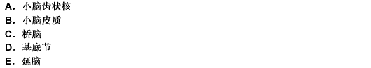高血压病脑出血时 最常见的出血部位 是A.小脑齿状核B.小脑皮质C.桥脑D.基底节E.延脑